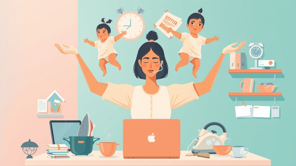 Modern Indian mother: a smooth blend of tradition and progress. Most mothers today carry a career on their shoulder, yet still loads the lion's share of family work. Pressure to be superb professionally as well as domestically usually leads one burning out yet this woman rarely complains. She does not return home from office; instead, her work continues at home as she ensures her children get all the love and care that they need.
