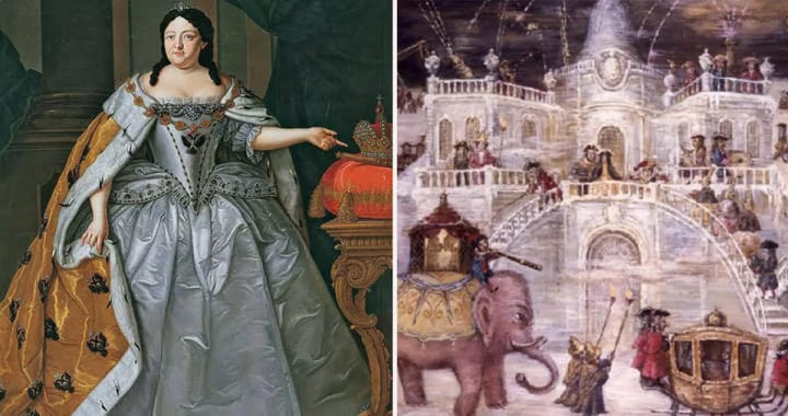 The newlyweds were obliged to parade in front of the palace disguised as clowns in a cage atop an elephant. Then, they were compelled to spend the night naked in the ice bedroom during a cold Russian winter.