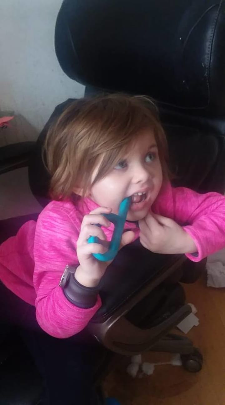My daughter is unique in her own way. She's smart, funny, silly, and she loves to dance. Sure, she has her moments. Sometimes when she gets mad at me she hits, but now that I know that she has autism, a whole new world of therapy has opened up to me. I now know ways to help her cope with all of the emotions running through her. I've just recently noticed that she loves to chew on things, and now I've found that there's an outlet for that as well. She LOVES her chewy, and it keeps her from putting things in her mouth that shouldn't be there. She takes it everywhere with her. We're definitely getting more.