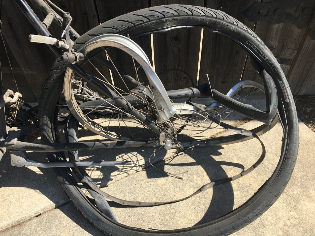 This bicycle is the result of distracted driving. It doesn’t matter what the distraction is. When you are distracted enough to run into a person on a bike or walking down the street or riding in a car, it doesn’t matter what distracted you.