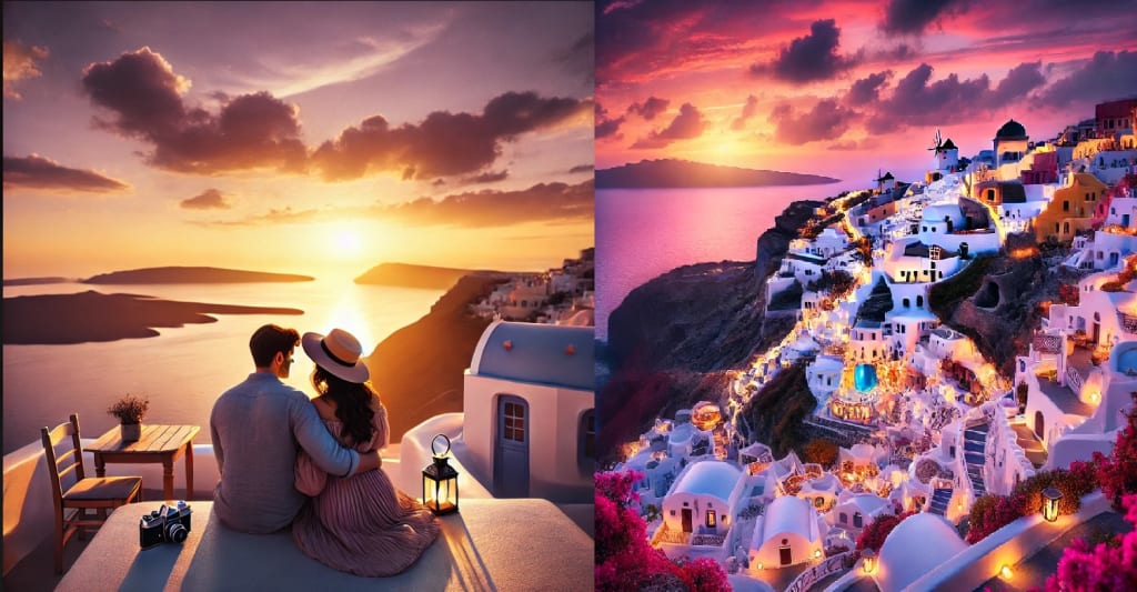 She sat at the table next to him, narrating the view to her phone as she recorded for her blog. Her words painted vivid pictures — sun-drenched cliffs, fishing boats bobbing in the harbor, the sky blushing pink as the sun dipped lower. He listened, enchanted by her voice, until he couldn’t resist speaking.