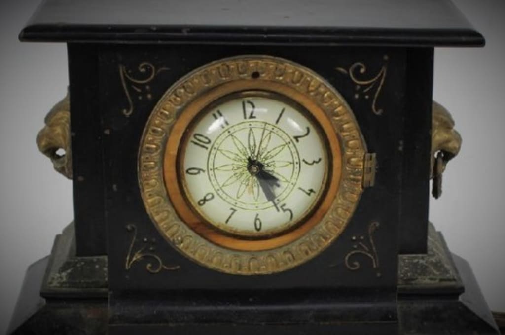 The sun shone brightly into the room through the opened blinds. Normally, that basement seemed dull and dark, but it gave a warm glow to the room which I was glad for. It was harder than I thought to walk into Grandma’s bedroom and see her handmade quilt on the bed and her clothes hanging in the closet. I walked to the dresser where the clock ticked and presented 1:05pm on the face. It was made of myrtle wood, painted black with gold embellishments. It had a white face featuring black numbers and clock hands. There was a glass cover protecting the face. My grandmother must have really treasured that old clock. Maybe it was a rare antique, and that is why she had put a picture of it in her black notebook.
