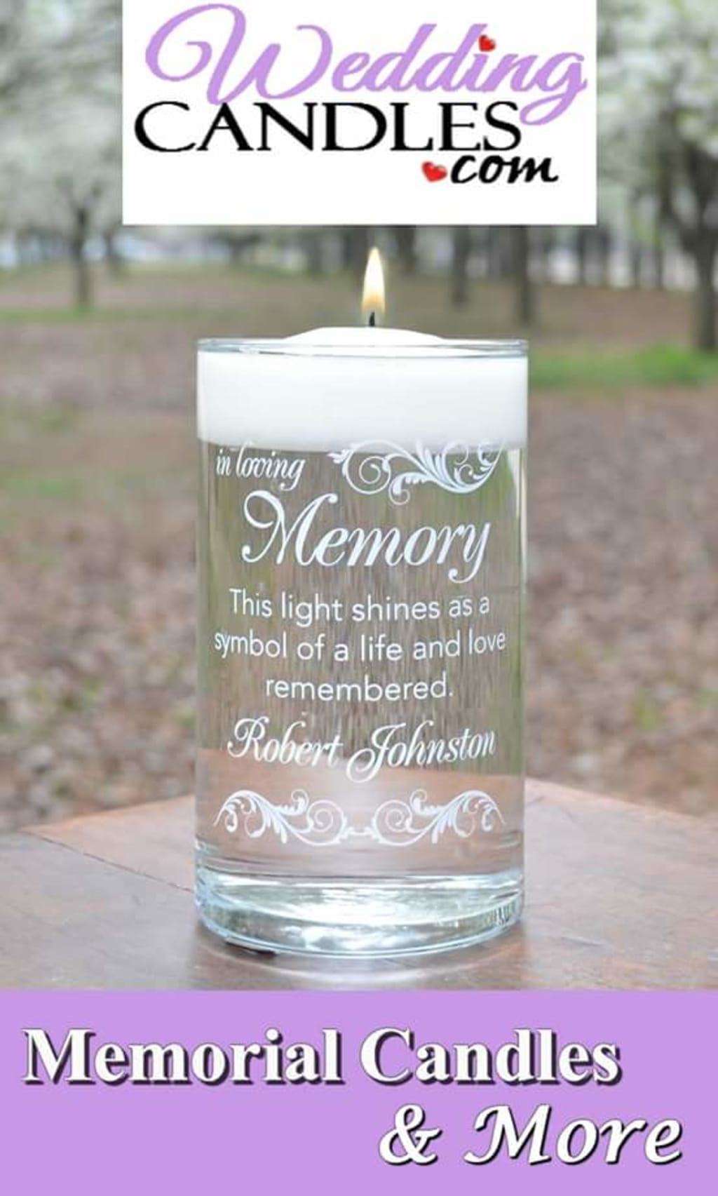 They also have candles where they can have these big glass jars that they put the candle in and it can say the name and the date of when the person died on the candle It can say whatever you want it to say. It can say, "In memory of James Alan Mollett beloved father April 14th, 2014, or it can say "In memory of Charles Heinz and it can have the date that Charles passed away or it can even have the birth date with the date that the loved one passed away. Whatever you want you are able to make it your own. Then you can always light the candle either while the wedding is going on or even after the wedding when you are having the reception. However, you want to do it, if you have a lot of loved ones that you want to attribute in that way and you are having a wedding at night time you can always put them out in the dark for people to have light or you can just have it burning to get that certain smell that reminds you about when the loved one was around.
