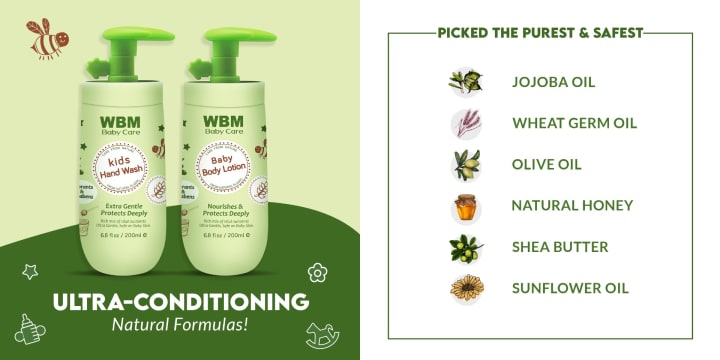Many people are unaware of how crucial hand cleaning is or how much it may be improved by using a good, natural hand wash. For harried parents who want to keep their baby's hands clean and free of hazardous chemicals, WBM Baby Care Hand wash is the ideal option. Honey, wheat germ oil, and certified organic olive oil are natural components used in the making of this soap, which helps to properly cleanse, moisturize, and nourish the skin.