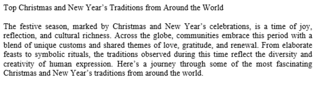 Christmas and New Year’s traditions around the world showcase the beauty of cultural diversity and the universal themes of love, hope, and celebration. While each country has its unique customs, the underlying spirit of togetherness unites people across continents.