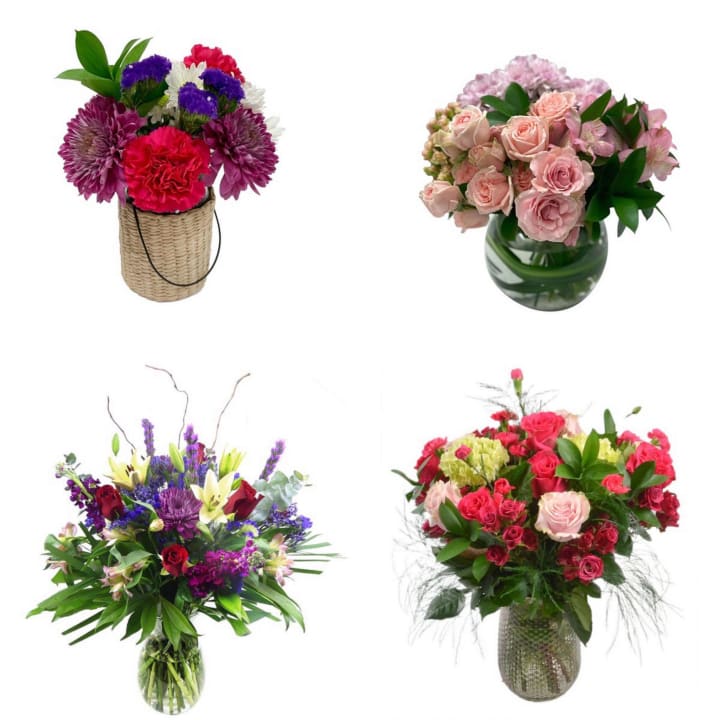 Some stores prearrange flowers in lovely vases that look similar in size and quality to what you will find in a professional florist's shop. I am lucky to have both a Whole Foods and a Kroger near me, and these are two groceries I know of that always carry beautiful, fresh arrangements that are already in vases. Many areas even offer pick-up or delivery for ultimate convenience!
