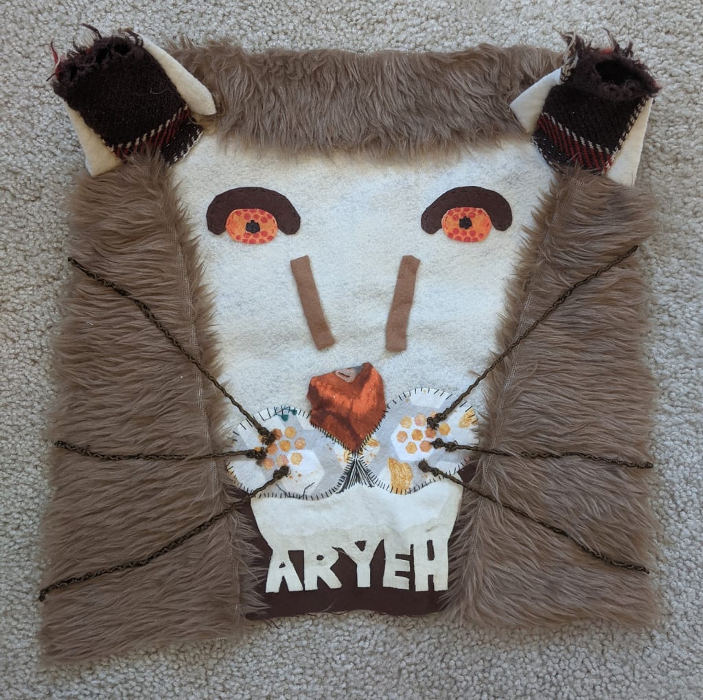 When I go visit in a few months, I will bring her brother his quilt too. I have not met him yet; he is almost a year old. “Aryeh,” my nephew, means “lion.” So his quilt has a lion and animals theme. I wanted to make another pillow-quilt for him. This time instead of a zipper, we are using strings sewn on to the face like whiskers to tie it shut.