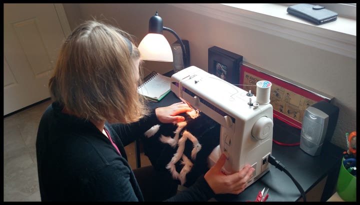 Again, I reached a point of I having to cut this special material. I did not want to mess it up, so I let Ella do the honors. I took a video so my mom could be a part of the crafting.