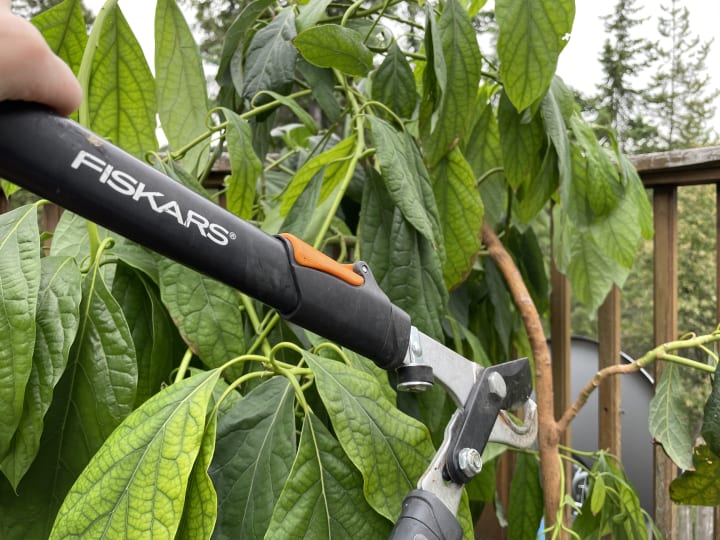 Hedging shears, These have recently been brought out of the shed to tackle one of my newest projects, my bonsai avocado tree. I purchased it from a cute senior couple in the area as it had outgrown their tiny home. The pictures, however, were somewhat deceiving. The tree itself was at least twice what I had envisioned. The scraggly plant stood nearly five feet tall and easy four feet in diameter. You can imagine the scene of us trying to tie down its branches and shove it in my minivan while ever so carefully as not to wake a sleeping child in her car seat. It was desperately in need of a good transplant and, of course, a good pruning. Luckily, when it comes to maintaining plants, I am well prepared.