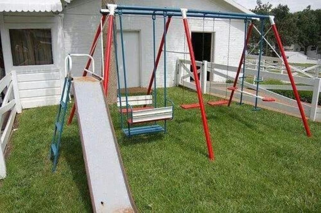 Over on the grass, beside the garden, which, ran the entire perimeter of the backyard. Grandpa was a big gardener, and had even been featured in the local paper for having the most beautiful garden (out front) once, I think. It could have been more than once but I remember once for sure. Anyway, alongside the garden, on the farthest right of the backyard there was a swing set, just for me, as I was the only Grandchild at that time. I am the oldest of I believe 9, or 10 Grandchildren they eventually had. So that was my swing set. It was one of the ones that had regular swings obviously, then on one side, there was one of those swings that had the 2 benches facing each other and the table in the middle that kind of glided. Grandpa used to squeeze himself into one of the seats with me often and swing with me. He had a white beard and looked very much like Santa Claus. But usually with a baseball hat covering his balding. He was Danish and also a fairly good singer. The whole Danish side of the family were good singers I think, even my Great Grandma (we called her Farmor, pronounced fa-moi) sang.