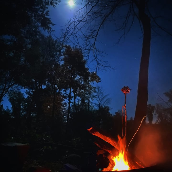 My relationship with her continues. Before the Hunter’s moon I scattered seashells around the fire, seashells she picked, and burnt things that maybe my brothers tried to take from me, things of my dad’s, my mom’s.. I didn’t wish for anything.. just let go. A rainstorm happened that night and lasted til morning. Thunder and lightning in Vermont’s green mountains. When I awoke, the fireplace still smoked.