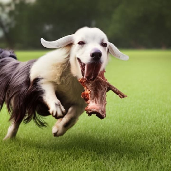 Going in had only taken me a second or so. The second I had stepped back out, I saw the neighbour's dog grab the meat by the bone and then quickly it ran away with it.