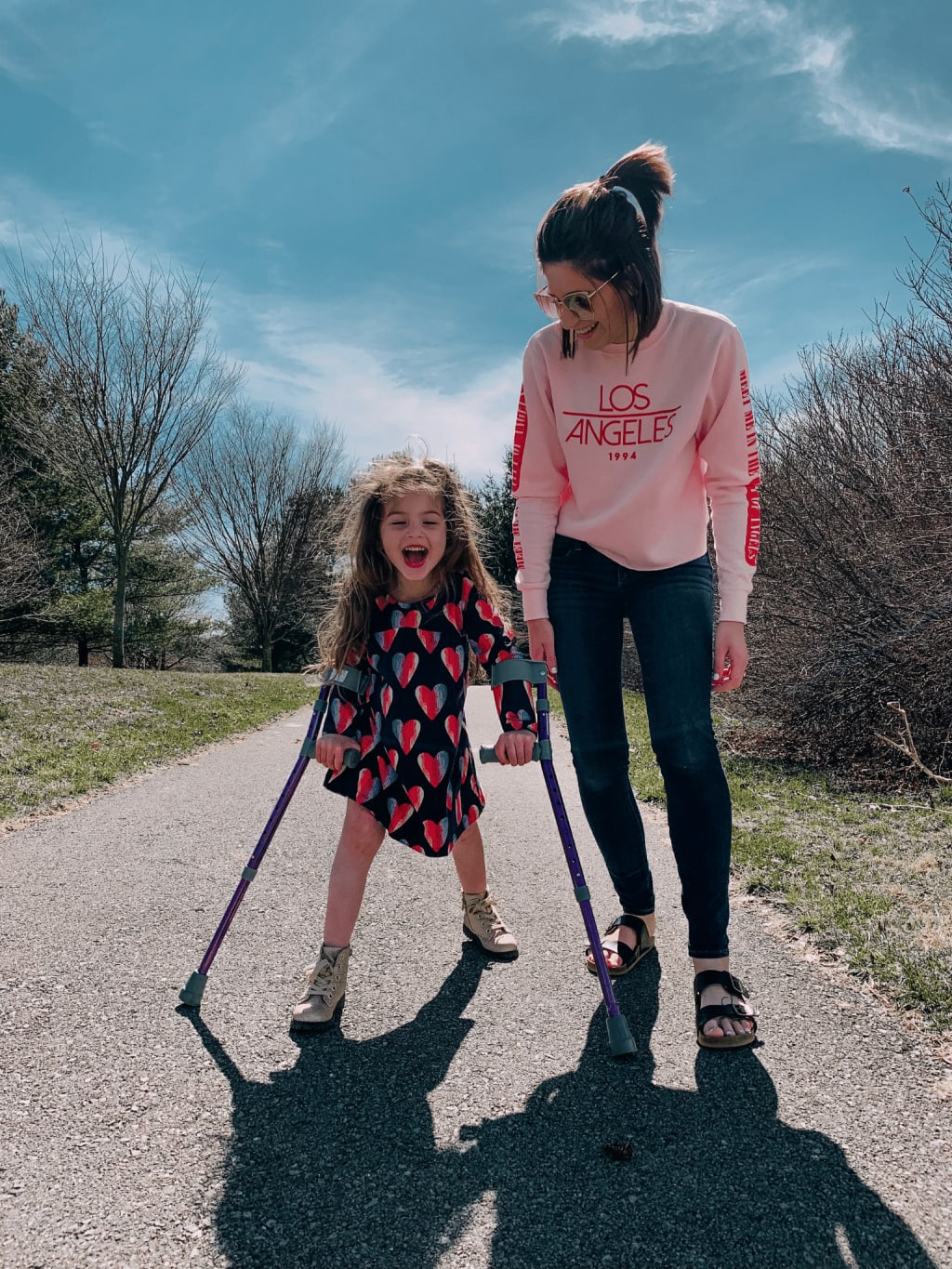 She also loves when someone points out something about her- whether it's her sparkly shoes or her pink crutches, she always responds with the sweetest "Thank you!".