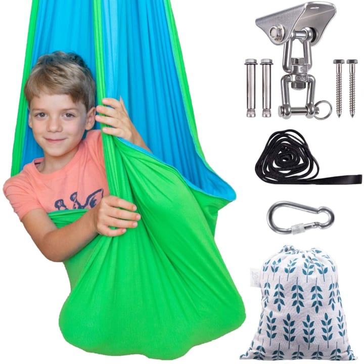 These last two really go together. A sensory swing is a big investment, however, if your child has special sensory needs, this is a priceless investment. If your child does not have special sensory needs or meltdowns this isn't a necessity (but it sure is fun).