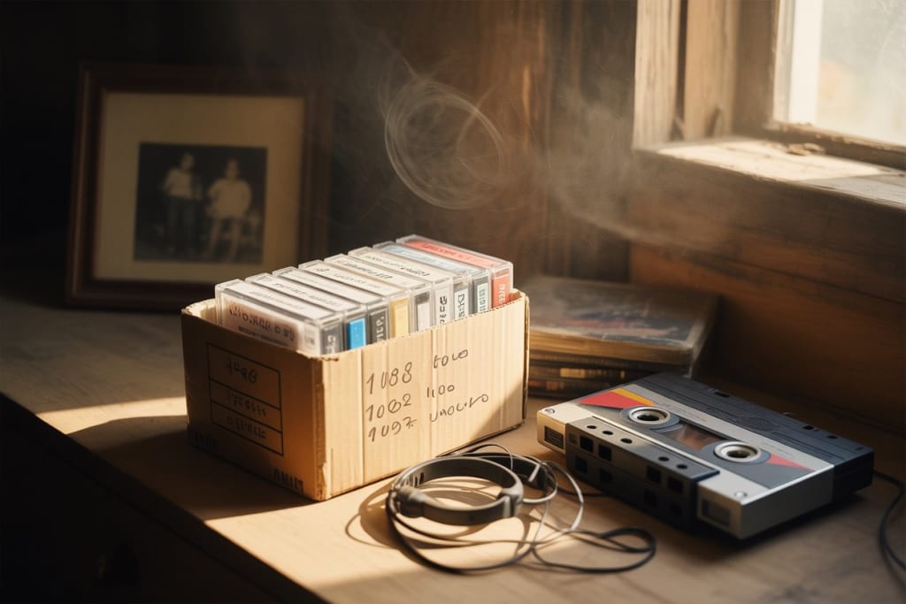 Inside: cassette tapes. Dozens of them. Each marked with dates in black ink, stretching back to 1978. Some were labeled with names: Eleanor, Paul, Me – 1993.