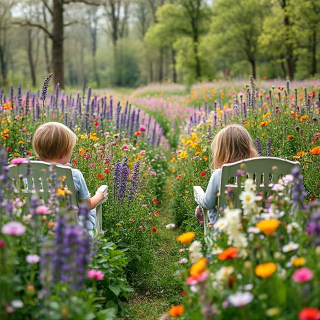 At some point, a soft breeze stirred the flowers, and the books gently closed. The siblings looked at each other. Neither wanted to leave, but they understood, without speaking, that the garden was not a place to live in — only to visit.