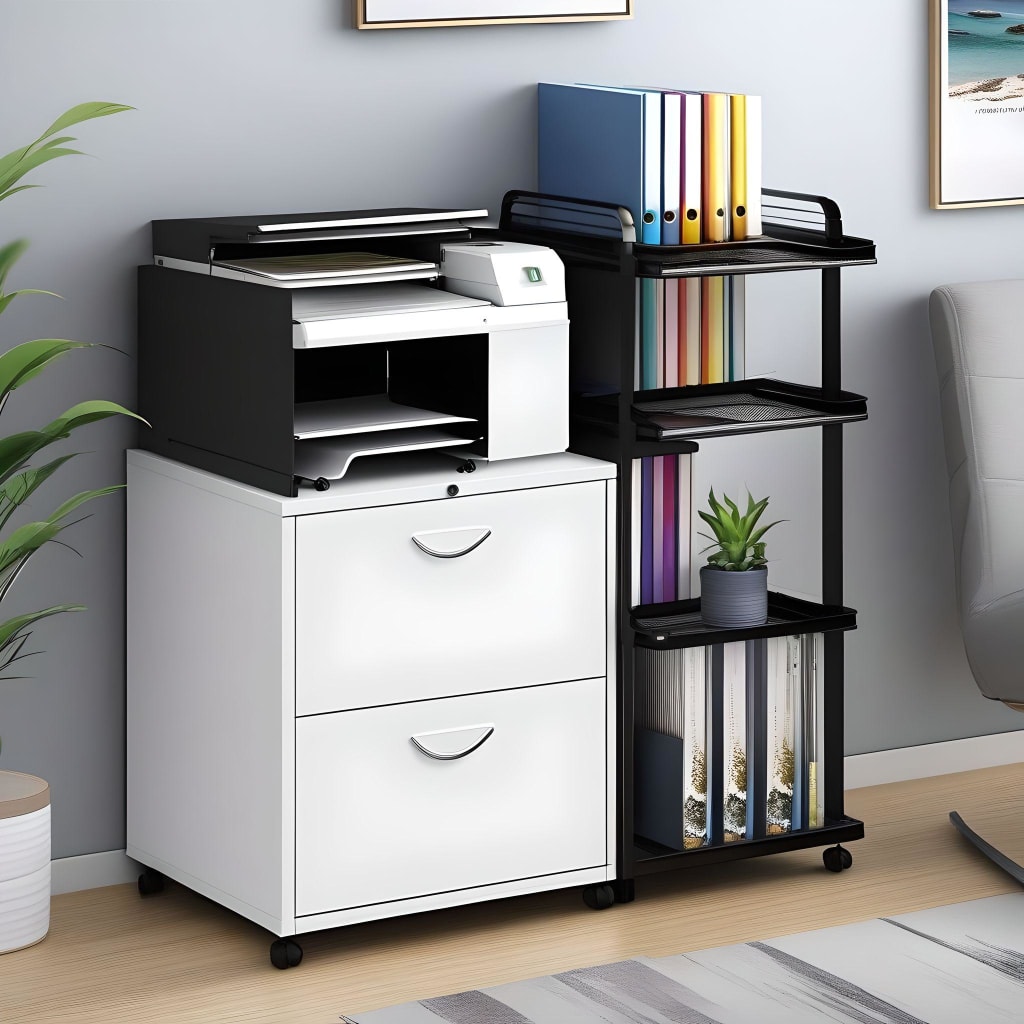 These file cabinets have wheels and so every time one needs to shift them around, there is no hassle. These are usually smaller two-drawer units, often made from lighter materials like laminated or wooden fiber board or materials.