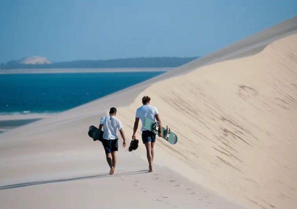 Reaching the island usually involves small aircraft or boat transfers. There are no large roads or urban centres. Movement across the island follows sand tracks and footpaths. These practical limits shape how the island is used and help maintain its open feel.