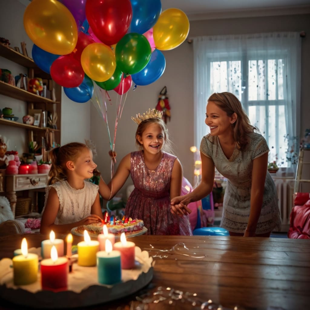 By evening, the house was transformed. Uncle Saem had decorated it with glowing fairy lights, colorful balloons, and shimmering ribbons. The hall looked festive and bright. Soon, relatives began to arrive—her elder uncle and aunt with their children Hamad, Hamna, Hadia, and Linta, followed by her aunt with her mischievous kids, Anas and Anaya.