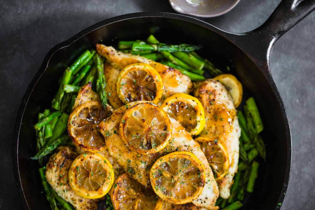 Lemon chicken is always a great meal to make, and with its trusted companion of asparagus, you'll be golden. This recipe is by Pinch of Yum, and only requires chicken, flour, lemon pepper, asparagus, and lemons.