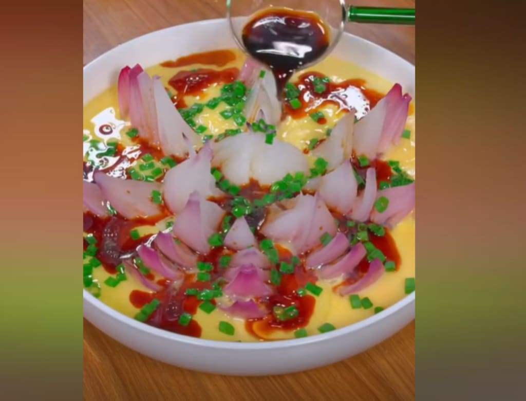 1. Lotus Blossom Steamed Eggs (莲花蒸蛋) 🌸