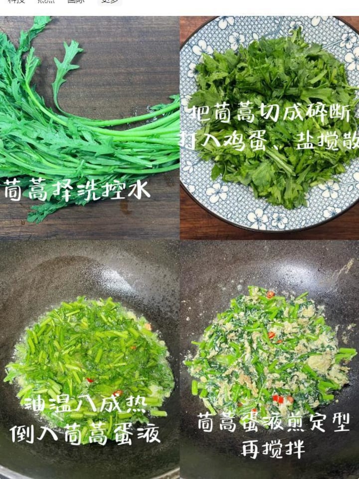 1. Wash and drain chrysanthemum greens (tong hao), removing any tough stems. Finely chop the tender stems and leaves.