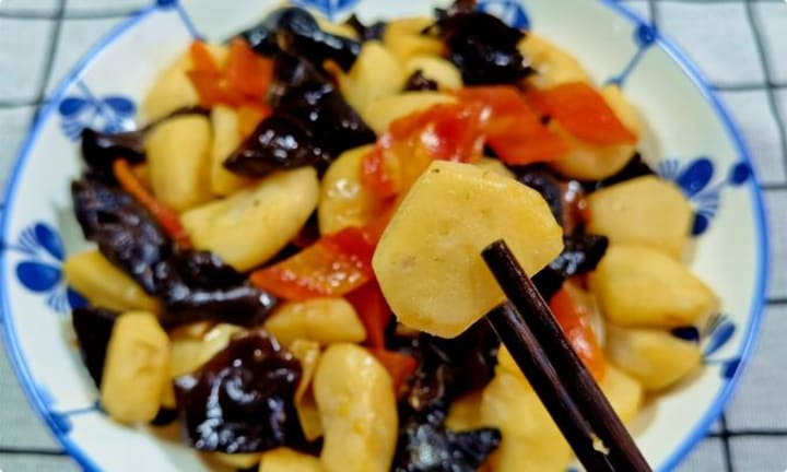 2. Stir-fry: Heat oil in a pan, stir-fry carrot slices until slightly soft. Add black fungus and water chestnuts, tossing together. Splash in a little water to prevent drying, then season with salt and a dash of oyster sauce (or light soy sauce). Cook until all ingredients are tender and flavorful.