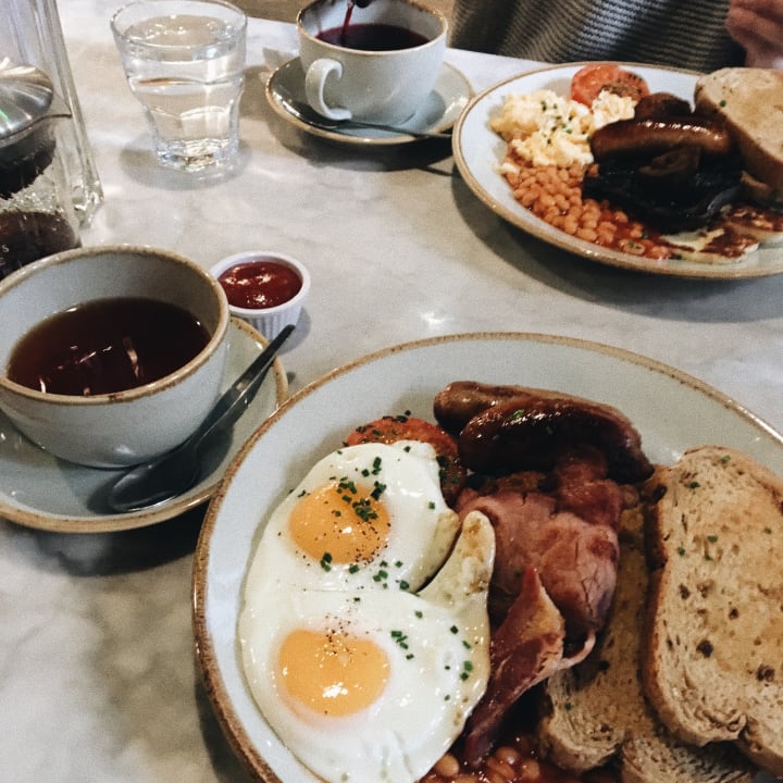 Your first stop is Leaf on Portland Street. You could easily miss the entrance crammed in the middle of various offices, but don’t let that deceive you. It’s a mirage. Inside is a vast space that opens far and wide with tables comfortably spaced apart so you’re not “accidentally” eavesdropping on the table next to you. For veggie/vegan options, Leaf provides! Well presented, and cooked to high quality, there is just the right amount on the plate to satisfy your breakfast craving without leaving you heavy and bloated for the rest of the day.