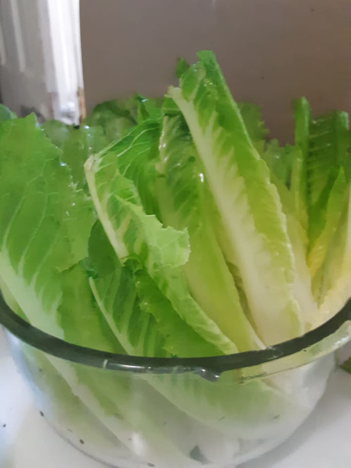 - Conditions: Given a highly motivated human, two bunches (stalks?) of collard greens; one (heart? head? bunch? clump?) of Romaine lettuce; a kitchen with limited working space; and whatever else the highly motivated human has on hand