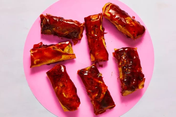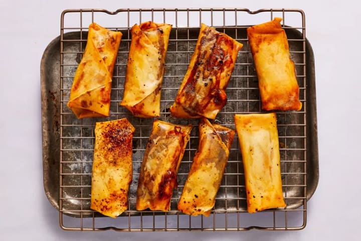 2. Peel apart 8 lumpia wrappers and set aside. Cover with a piece of plastic wrap so they don't dry out.