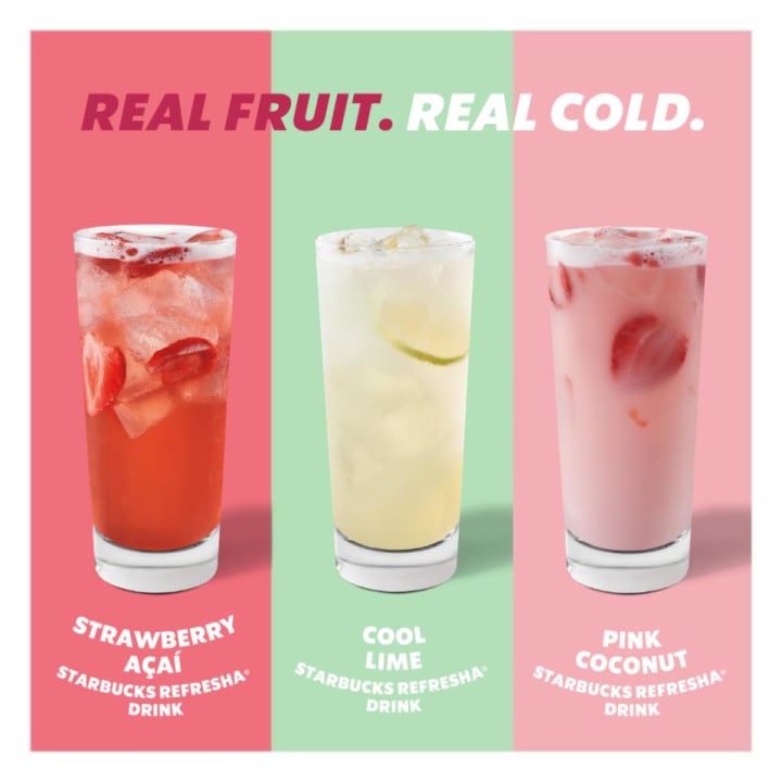 This year’s new drinks for the Starbucks summer menu looked really interesting. I was drawn to the Pink Coconut Refresha because of the strawberries in it. On the poster, it looked so cool with the strawberry milk and the strawberries floating at the top. Like a lot of food amd drinks, they don’t always look as pretty as they do in the pictures, but as long as it tastes alright, I don’t care!