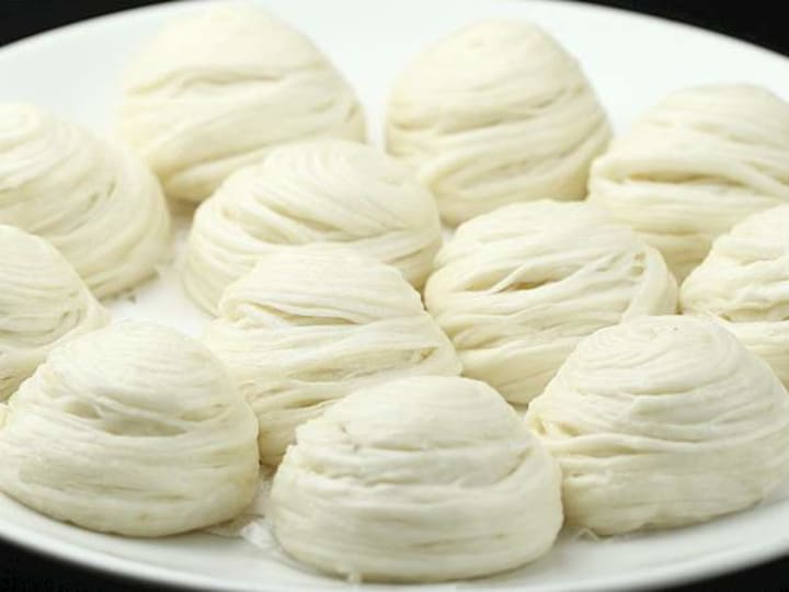 Msemen is a traditional Moroccan flatbread prepared with flour, semolina, sugar, salt, yeast, warm water, oil, and clarified butter. Then the dough is kneaded until it is smooth, then flattened and shaped into squares.