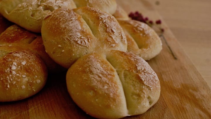 The rolls are eaten for breakfast or as a snack just plain or filled with cream cheese or jelly.