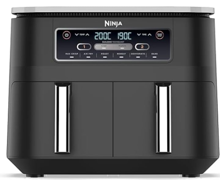 One standout option in the air fryer market is the Ninja Foodi Dual Zone Digital Air Fryer (AF300UK). This sleek and efficient model boasts a spacious 7.6L capacity with two drawers, allowing you to cook two different foods simultaneously. Featuring six cooking functions—Air Fry, Max Crisp, Roast, Bake, Reheat, and Dehydrate—it offers a range of cooking options to suit every meal. Ideal for families or meal prepping, the Ninja Foodi Air Fryer can cook up to 4-6 portions at once. Its non-stick, dishwasher-safe baskets make cleanup a breeze, and its oil-free cooking method ensures healthier meals without sacrificing flavor or texture. Whether you're making crispy fries, roasted vegetables, or even dehydrated snacks, it is designed to make cooking faster, simpler, and more enjoyable.