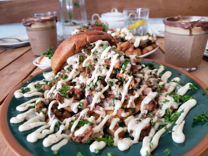 The menu contains authentical Egyptian foods, especially brunch items. One of the most popular things is Basturma Scramble.