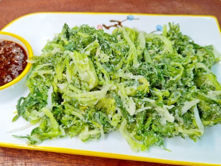 6. Dipper: Whisk minced garlic, ¼ tsp salt, 1 tsp soy sauce, 1 tsp vinegar, and sesame oil. Add chili oil if desired. Drizzle over chicory or serve as dip.