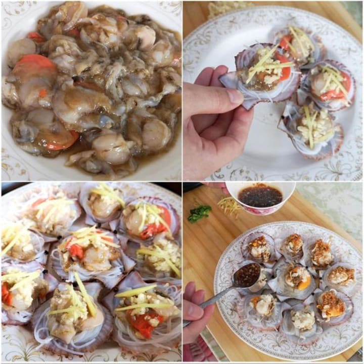 1. Clean scallops and shells. Soak vermicelli.
