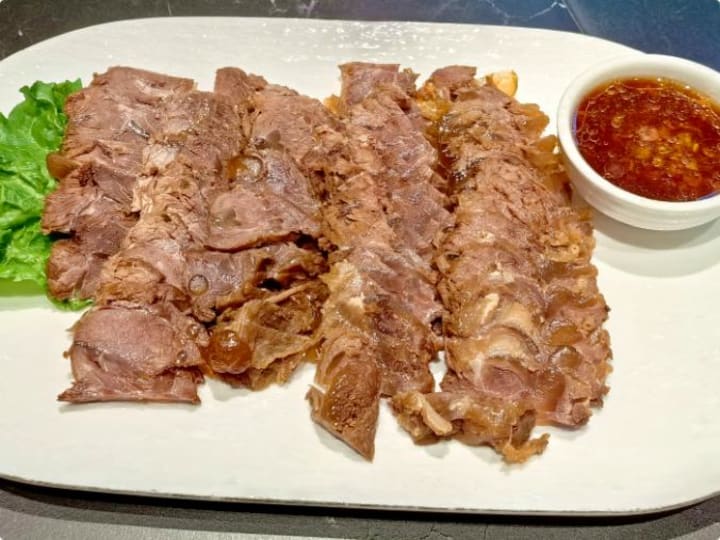 The shank, cut from the muscular leg area, is packed with tendons (often called ‘money tendons’) that form beautiful, flower-like patterns when sliced. Because of its dense connective tissue, it requires long braising or stewing. Once cooked, the tendons turn gelatinous and springy, while the meat remains firm and flavorful. It’s the ultimate choice for dishes like soy-braised beef or sliced cold cuts—perfect for impressing guests with its stunning presentation.