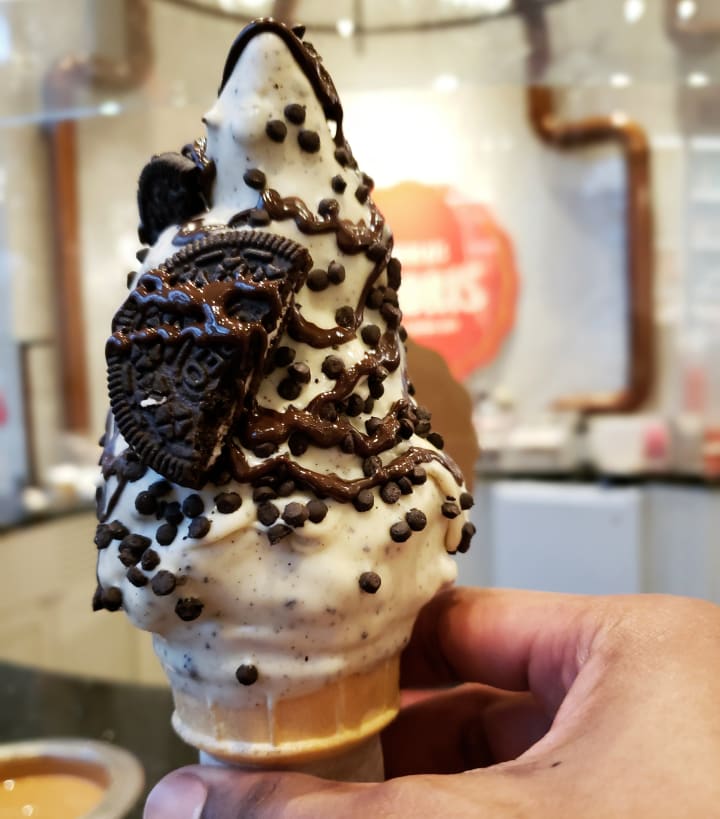 The cones come in four different sizes, ranging from very small to a large size. After going for the medium cone the first time around, I learned my lesson considering between myself and my boyfriend we just couldn't manage to finish it.