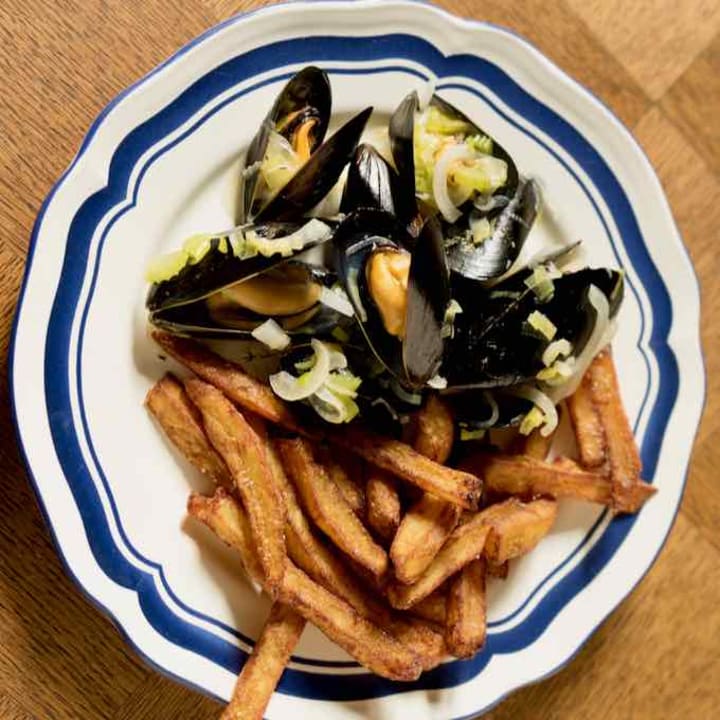 Moules-frites is a traditional comfort food that consists of mussels with Belgian fries on the side. This dish is popular in Belgium, the Netherlands, and northern France. Mayonnaise is used as a condiment.