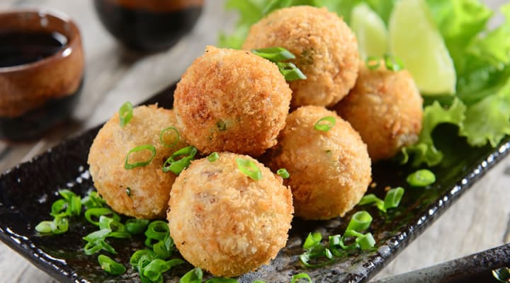 Crab Rangoon is an American-Chinese dish. It is made with deep-fried dumplings that are stuffed with crab meat, garlic, scallions, and cream cheese. It is served as an appetizer with dips like mustard, soy sauce, or plum sauce.