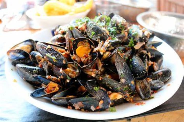 A traditional dish from Ireland is mussels in cream. It is very popular in Donegal and Cork countries. This is a simple dish that is prepared with scrubbed and de-bearded mussels. First, the mussels are heated in a skillet until the shells open. Set aside the mussels. Then a roux is made with flour and butter and mixed with a bit of water and heavy cream and stirred until the sauce thickens. The sauce is seasoned with salt and pepper and poured over the mussels with their juice.