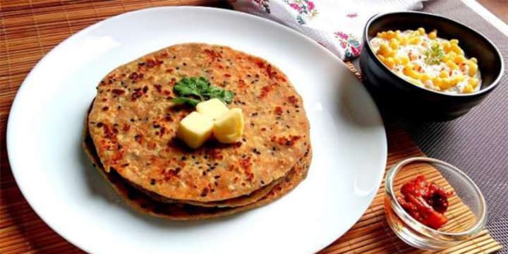 A type of bread known as a paratha, which is typically consumed for breakfast, is golden brown in color, flaky, and layered. It comes in round, triangular, square, or heptagonal shapes and is prepared of whole wheat flour and baked in ghee or clarified butter.