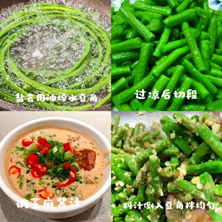 6. Combine and Serve: Place the thoroughly dried green beans in a large mixing bowl. Pour the prepared sesame dressing over them. Using clean hands or salad tongs, toss energetically to ensure every bean is generously coated in the creamy, aromatic sauce. Transfer to a serving dish and enjoy immediately or chill briefly for an extra refreshment.