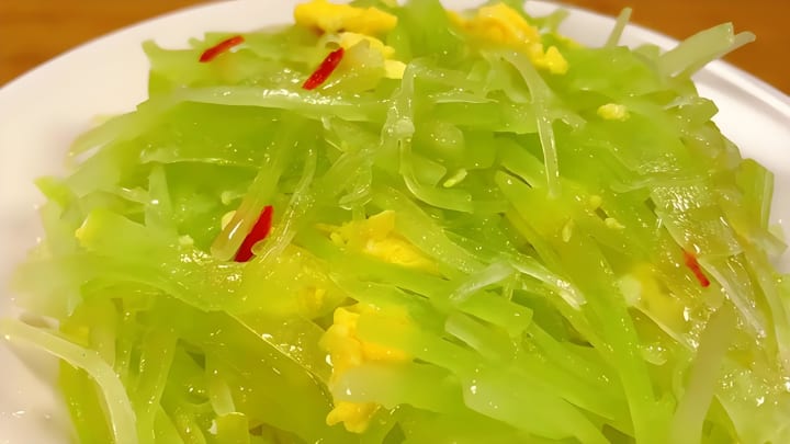 This simple, homely dish combines crisp vegetable shreds with fluffy scrambled eggs. Asparagus lettuce (celtuce) stems are commonly used, offering a juicy crunch similar to jicama, but prepared bamboo shoots work beautifully too. It’s protein-rich and light.