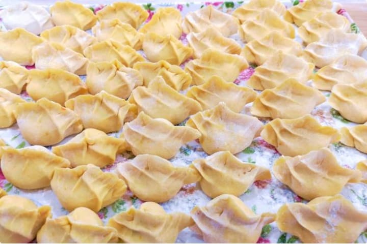 2. Boil to perfection: Bring a large pot of water to a rolling boil. Add the dumplings and gently nudge them with a spoon to prevent sticking. Pro tip: After the water boils again, add a small bowl of cold water ("dian shui"). Repeat 2-3 times. When the dumplings float, turn plump, and the wrappers become slightly translucent (hinting at the orange filling inside), they’re done! The golden pumpkin wrappers make them look especially festive.