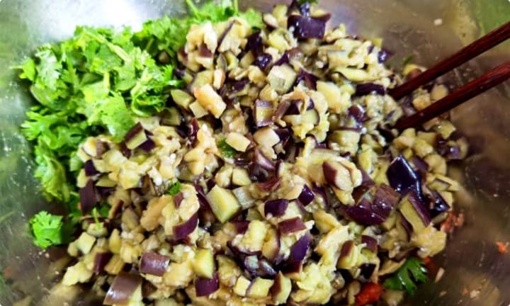 Think eggplant is too oily? That’s just the wrong cooking method! Steamed, squeezed dry, and mixed into dumpling filling, eggplant becomes tender, fragrant, and irresistibly savory. Paired with cilantro, it’s a game-changer—appetizing and refreshing.
