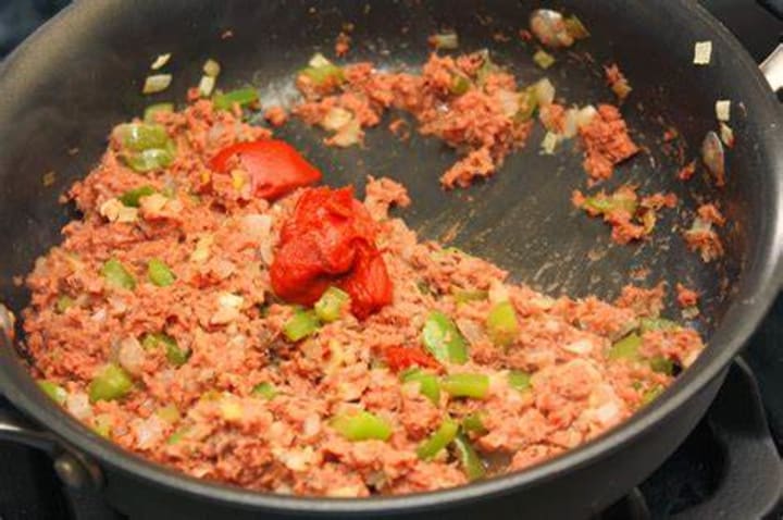 Fire engine is a traditional breakfast dish and has also been adopted as a local hangover cure. The dish is made with canned corned beef, thyme, tomato paste, onions, celery, bell peppers, tomatoes, oil, salt, and plenty of black pepper. The ingredients are cooked in a large frying pan. The dish is served with grits or rice.