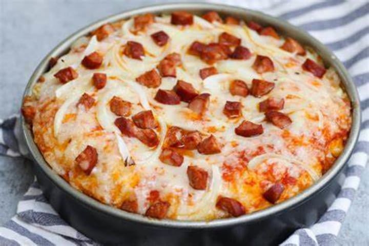 Pizza cubana is a pizza that is made with dough a little thicker than for other pizzas and a sauce that is a bit sweeter. Once the dough is prepared it is topped with ham, chorizo, pepperoni, shrimp, ground beef, lechon asado, lobster, picadillo, bell peppers, and sliced bananas. Along with the tomato sauce and cheese usually gouda in Cuba.