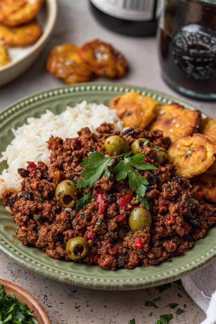Picadillo is a spicy dish that is made with ground meat, tomatoes, and onions. Raisins can be added for sweetness and olives for saltiness, potatoes are added in the Philippines, and lime juice, honey, or chili peppers in Mexico.